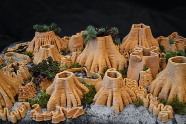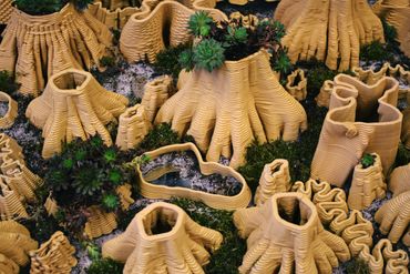 These questions drive the exploration of raw clay 3D printing in MUD Robots. The project combines natural clay with robotic fabrication to investigate a built environment where architecture and nature are not separate but interwoven. It speculates on a post-Anthropocene future where construction follows the logic of ecosystems rather than imposing on them.