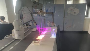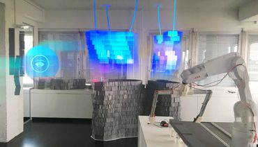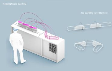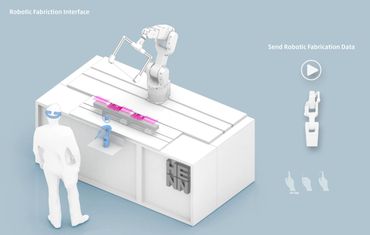 A collaborative and experimental installation that explores the potential of human interaction with Robotics Fabrication and Mixed Reality technologies, developing towards just-in-time, zero-waste fabrication.
